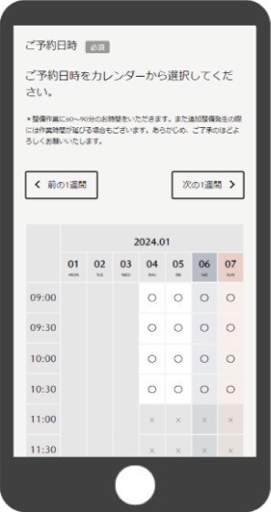予約希望日時を選びます。 -