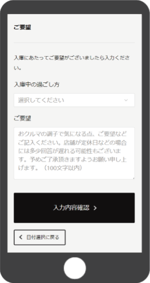 代車の手配など入庫に際してのご要望を入力できます。