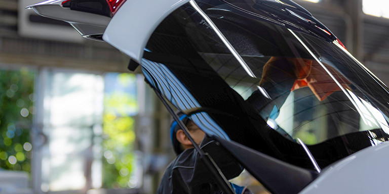ウインドウガラスは、根強く残るウロコや油膜汚れも徹底除去します。