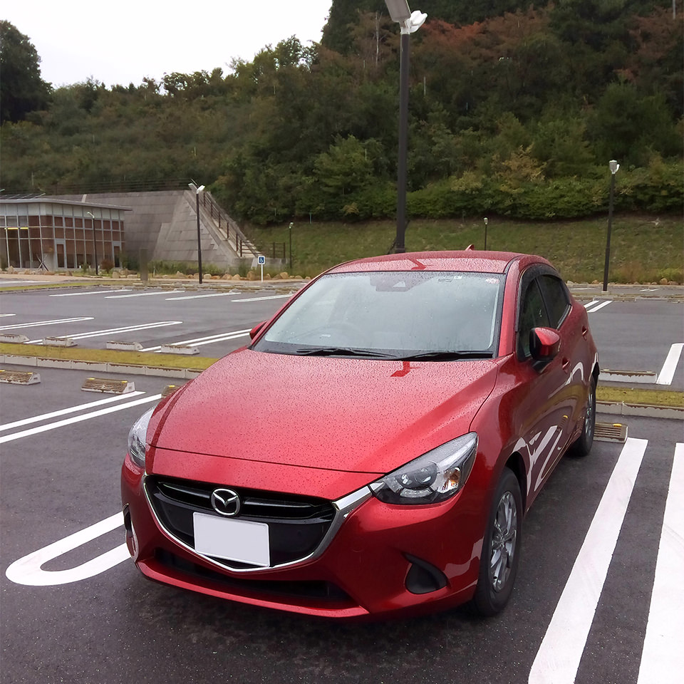 デミオは乗りごこちが良く、運転してて楽しい。マツダのソウルレッドの上品な明暗のコントラストにホレこんでいる。しっとりと暗い所で美しい。
