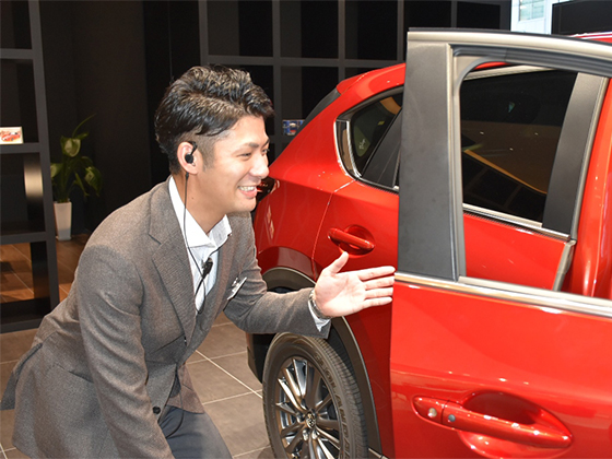 息子様の初めてのお車選びということでお母様がご来店されました。息子様のお仕事の関係上雪の多いところを走行されるということもあり、慎重なお車選びをされていました。私がお話をさせていただいた後も様々なディーラーさんを回られておりましたが、再度ご来店していただいた際に「こんな提案をしていただけるディーラーは他にはなかった。」とおっしゃっていただき、ご契約いただきました。お母様は他販社様のお車にお乗りになられていたこともあり、マツダをお選びいただけたことに喜びを感じました。