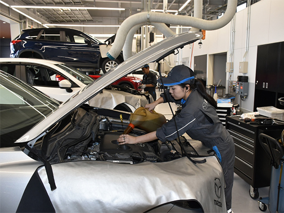 エンジニアの仕事は、毎日学ぶことが多く、入社5年目の私は日々先輩の方々に教えてもらう事が、まだまだたくさんあります。お客様が安心して車を任せられて何でも相談できるスタッフになれるよう取組んでいます。