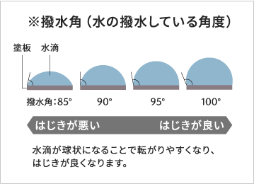 撥水性能を高めることで、雨上がり後などの塗装表面への汚れが付着しにくくなります。