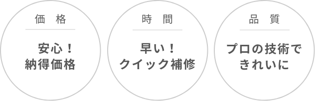 - 損傷箇所の色や素材、又その程度によっては「本格修理」でなければ対応できないものもあります。