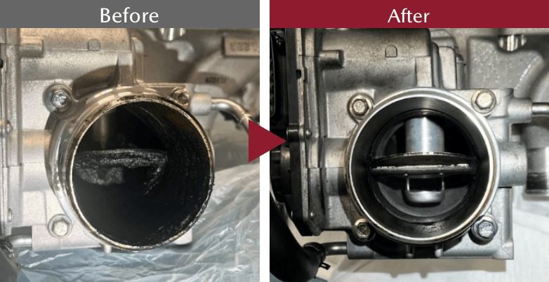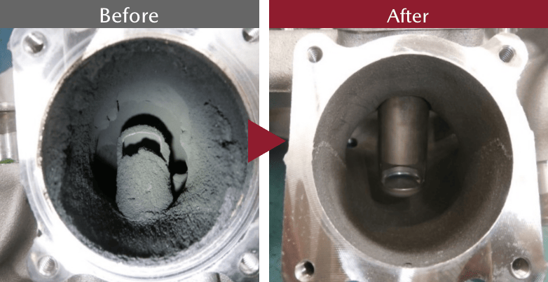エンジンは使用過程でシリンダーヘッド吸気ポート、インテークマニホールド、吸気シャッタバルブなど吸気経路にカーボン(煤)が付着していきます。