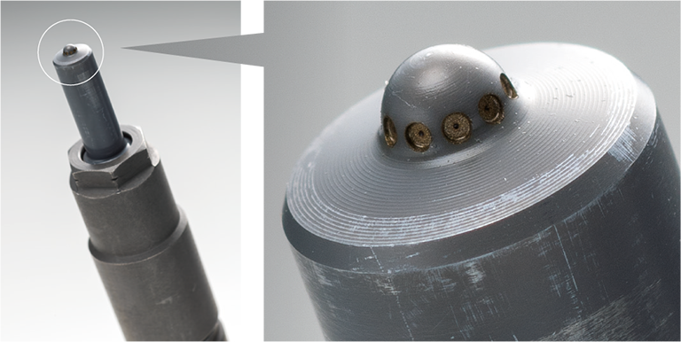 燃焼室に燃料を噴射するインジェクターの先端には10個の噴孔穴があります。