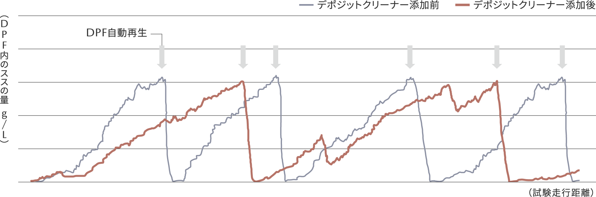 デポジットクリーナーを添加することで、DPF自動再生距離が改善されます。