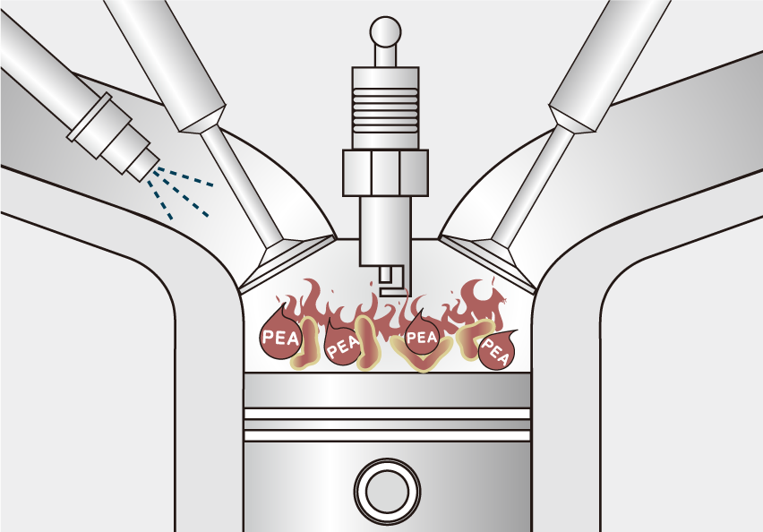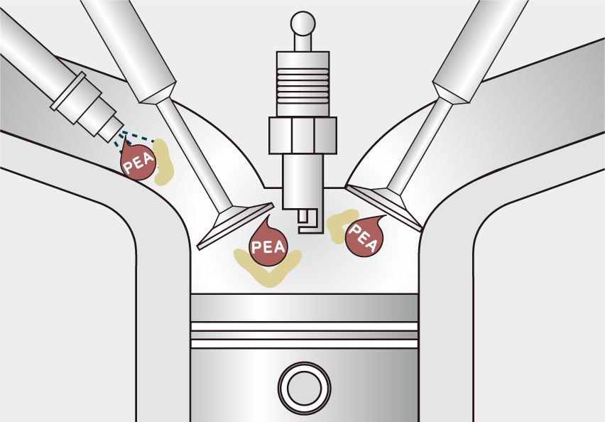 主要成分のポリエーテルアミンがデポジットを浮き上がらせて燃焼室に運び…